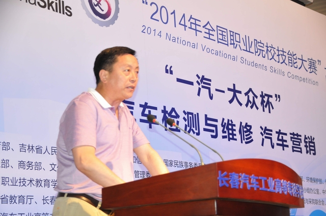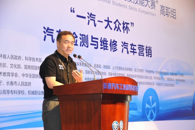 达娃副司长在讲话中介绍了职业教育及技能大赛的意义,他充分肯定机械工业联合会、吉林省委省政府、一汽大众公司对职业教育的高度重视,高度评价其为“是办好全国大赛的重要力量”,并总结了今年的大赛在“稳定规模、提高质量、完善制度、规范办赛”总体思路下所凸显的五个特点是涉及战略性新兴产业赛项占比超过三分之一、行业知名企业参与赛项超过八成、竞赛项目专业类覆盖面超过80%、大赛开放程度越来越高和赛项组织专业化水平再上新台阶!