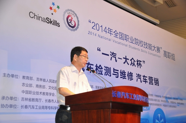 颁奖仪式上吉林省教育厅副厅长战高峰和教育部职业教育与成人教育司副司长达娃先后讲话。