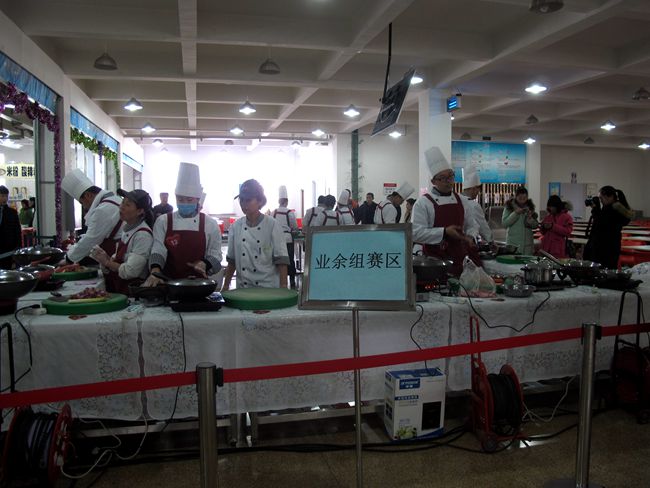随着学生处王伟副处长宣布比赛开始,参赛的各位专业选手和业余选手走向赛场,展开角逐。一瞬间,现场的锅碗瓢盘、火焰、绿蔬、面团,以及那翻滚的铁勺、扑鼻的香味、精致的造型,构造出一幅幅有色有味有型的图画。“炒烧煎炸煮炖蒸”,在现场各道菜式、面点的做法中,把这些基本却又博大精深的技艺展现得淋漓尽致,让红案白案厨师尽显风采。值得一提的是,由师生组成的业余选手,在准备过程中,得到食堂的大力支持,由食堂将参赛选手所需的食材提前准备齐全,从点滴细节上为比赛的圆满成功奠定了基础。