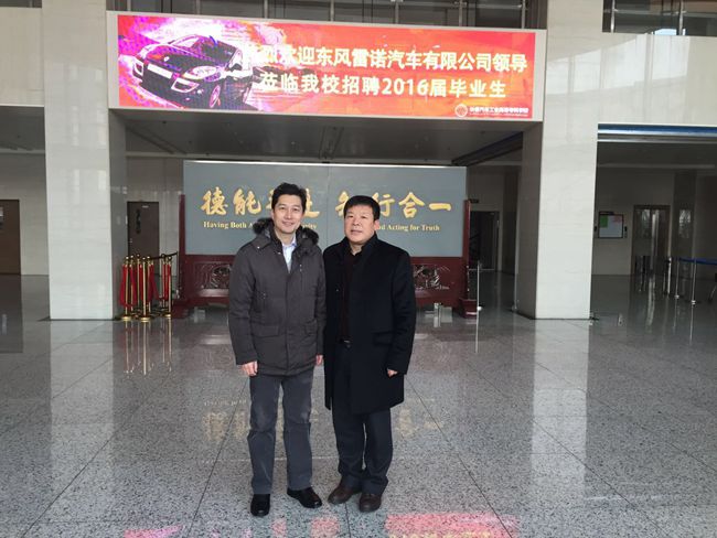 近日,东风雷诺汽车有限公司一行四人来我校招聘2016届毕业生,并在副校长明晓辉,就业创业中心主任刘凤珠的陪同下参观我校米其林实训中心、机器人技术应用中心、焊接基地、汽车综合实训中心、东风本田合作项目基地、丰田T-TEP培训基地等实习实训场地。