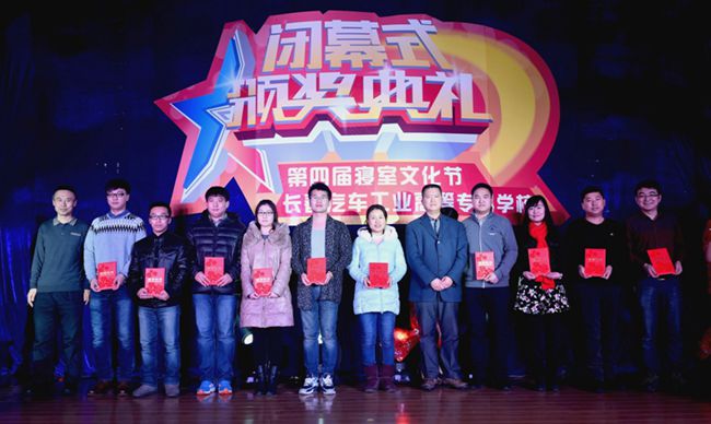 2015年12月16日,长春汽车工业高等专科学校第四届寝室文化节闭幕式暨颁奖典礼在校报告厅圆满落幕,副校长明晓辉、校长助理胡国良、总务处处长刘建才、新宇高校后勤管理有限公司副总经理罗红亮、汽车营销学院院长王泽生、机械工程学院院长魏建军、汽车运用学院副书记张红庆、汽车工程学院院长助理兼办公室主任齐琦、学生处副处长王伟、校团委副书记赵良富、学生处公寓中心李明东老师以及学生处、各学院学工团队的老师们出席了颁奖典礼。本届寝室文化节闭幕式暨颁奖典礼由广播站万元、秦培亮共同主持。
