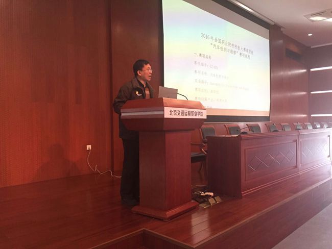 2016年4月20日,“2016年全国职业院校技能大赛高职组汽车检测与维修赛项说明会”在北京交通运输职业学院报告厅举行。我校汽车工程学院院长赵宇,汽车运用学院副院长李东兵、赛项指导教师孙雪梅以及赛项专家组成员弋国鹏老师参会,会议由李东兵主持。北京交通运输职业学院副院长贾东清到会并致辞,有来自全国近45所参赛院校的指导教师近百人参加了会议,北京华育天智、博世汽车检测设备有限公司等赞助企业技术代表也参加了说明会。