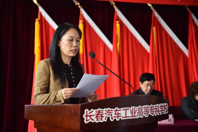 校党委副书记、校长李春明主持大会并宣读了中国共产党长春市教育局委员会《关于中共长春汽车工业高等专科学校委员会按期换届改选的批复》。