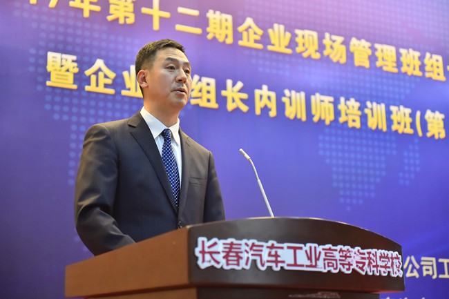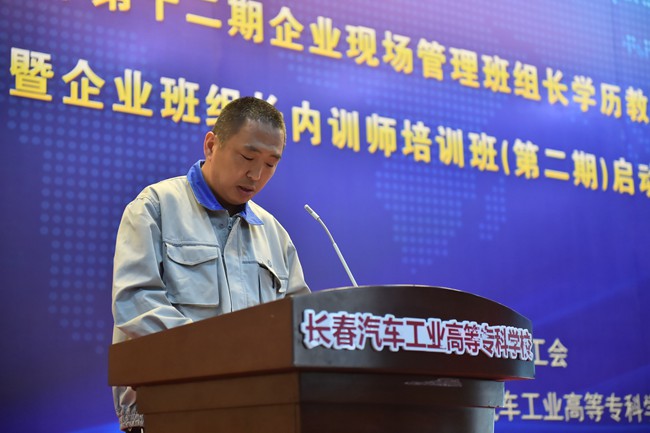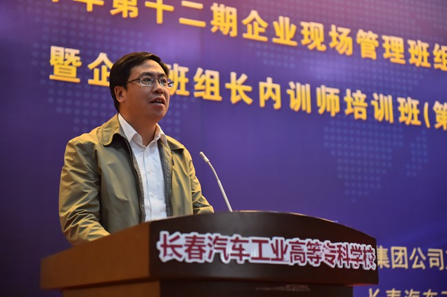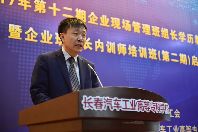 我校党委书记安军首先致辞,安书记在致辞中谈到,作为我校继续教育品牌项目,自2006年至今已经为一汽集团培养了2000多名生产一线班组长,涌现出王洪军、李凯军、齐嵩宇、周世君等一大批优秀毕业生,并在此基础上选拨优秀毕业生作为内训师学员开展培训,使他们的职业技能得到传承。安书记强调,深化校企合作是提升职教培养能力、推动企业发展的“金钥匙”,我校将力争打造成为企业培养精英人才、传承企业文化的重要基地,努力构建人才成长“立交桥”,让每个高专学子都有人生出彩的机会。