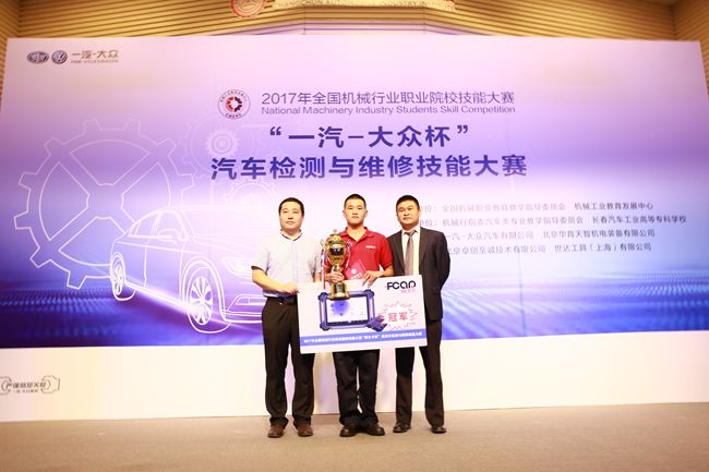 长春汽车高专副校长丁卓为“一汽大众杯”汽车检测与维修技能大赛汽车发动机系统检修赛项颁发团体三等奖