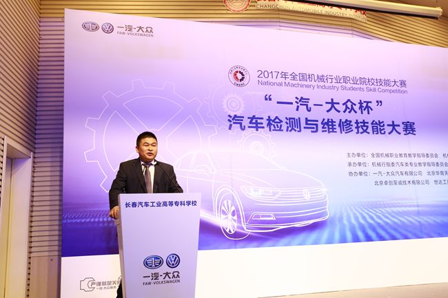 长春汽车高专副校长明晓辉主持“一汽大众杯”汽车检测与维修技能大赛闭赛式