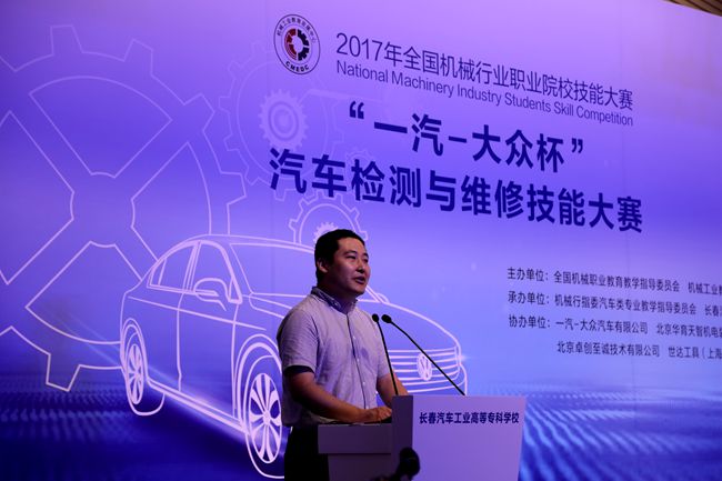 长春汽车高专副校长胡国良主持2017年全国机械行业职业院校技能大赛“爱夫卡杯”商用车汽车检测与维修技能大赛闭赛式