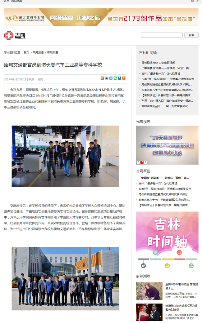 吉网——缅甸交通部官员到访长春汽车工业高等专科学校