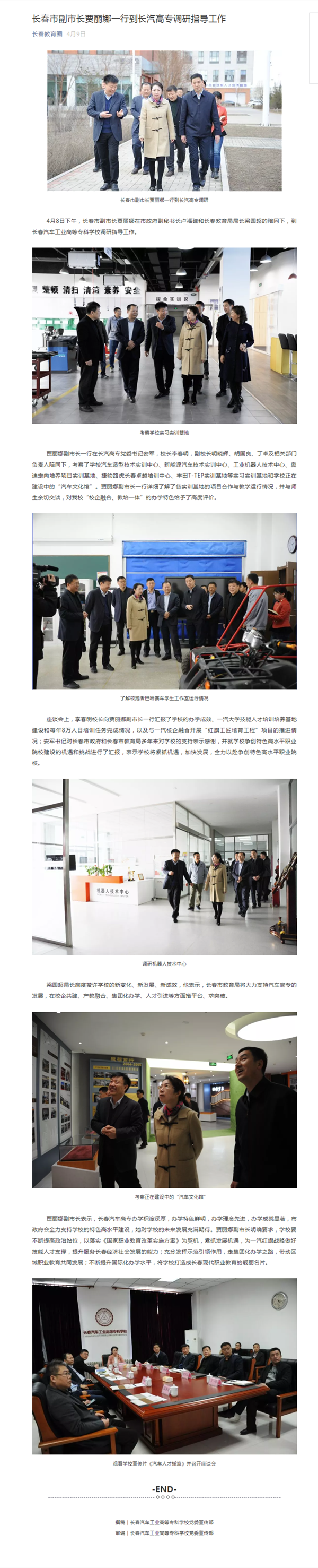 长春教育圈——长春市副市长贾丽娜一行到长汽高专调研指导工作
