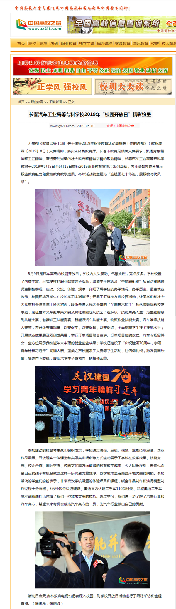 中国高校之窗——长春汽车工业高等专科学校2019年“校园开放日”精彩纷呈