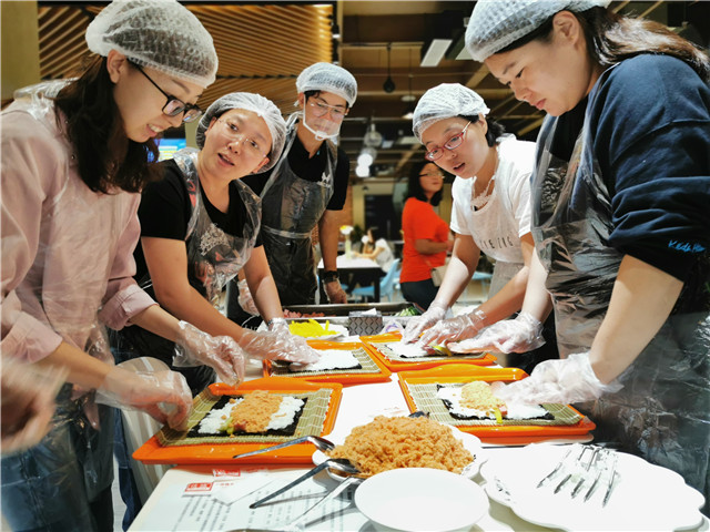 我校凡尚货栈创业团队和老师们共同制作寿司