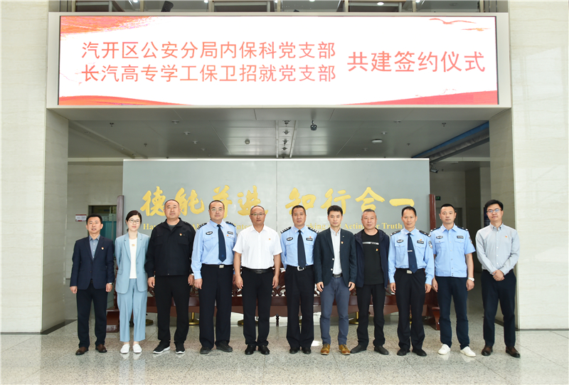 6月1日上午,长春市公安局汽车产业开发区分局(以下简称汽开分局)内保科党支部和我校学工保卫招就党支部共建协议签约仪式在图书馆415会议室如期举行。汽开公安分局内保科党支部书记张道吉、教导员赵明昊、干事朱黎明,我校学工保卫招就党支部书记程明、组织委员赵良富、纪检委员李明东、宣传委员刘通等党支部成员参加签约仪式。签约仪式由赵良富主持。
