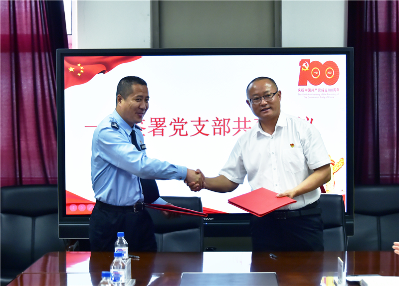 签约仪式上,双方共同签署了党支部共建协议,为开展合作共建奠定了良好基础。随后,张道吉详细介绍了内保科党支部发展及业务开展情况,并表示要积极配合党支部共建,资源共享,合作共赢,推进“平安校园”建设。