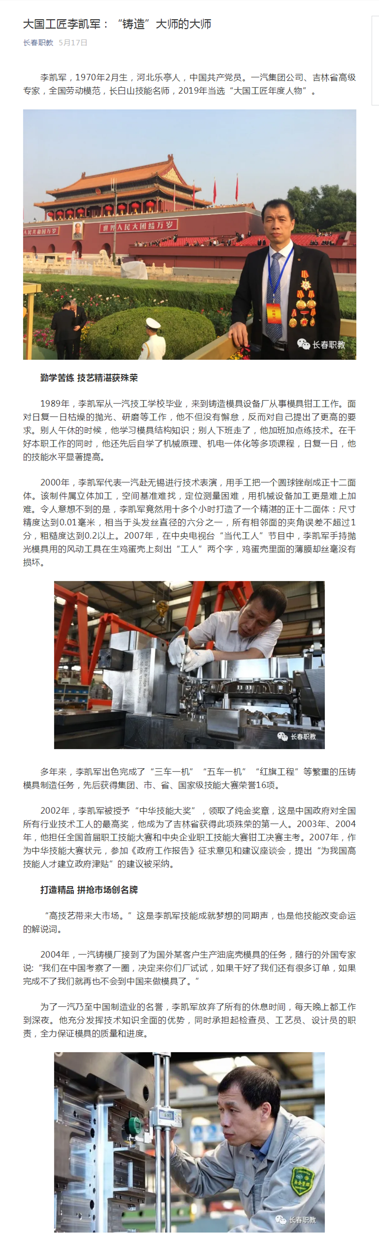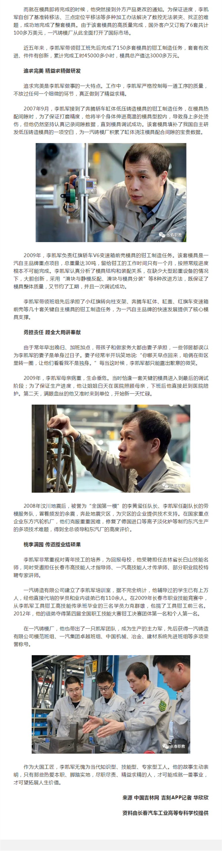长春职教——大国工匠李凯军:“铸造”大师的大师