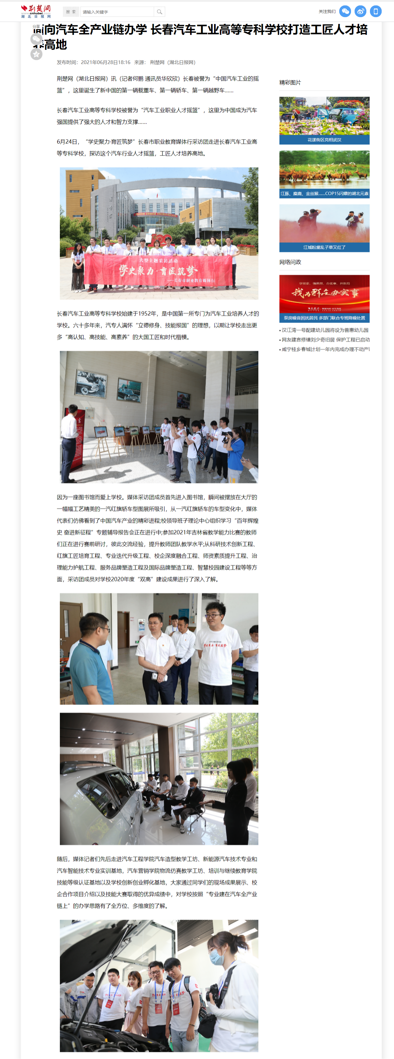 荆楚网——面向汽车全产业链办学 长春汽车工业高等专科学校打造工匠人才培养高地