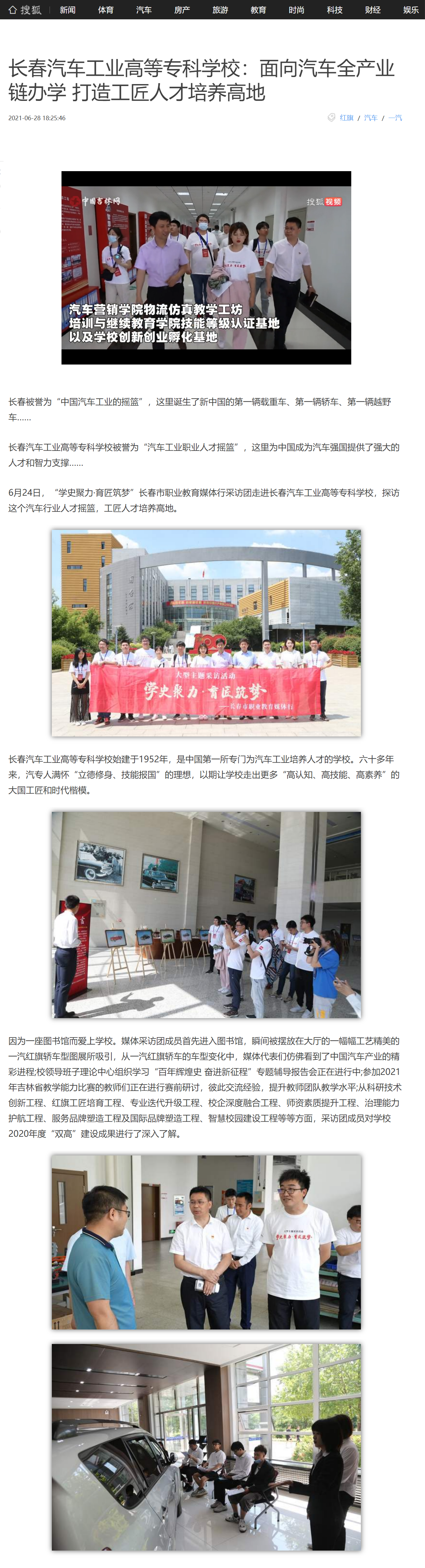 搜狐网——长春汽车工业高等专科学校:面向汽车全产业链办学 打造工匠人才培养高地