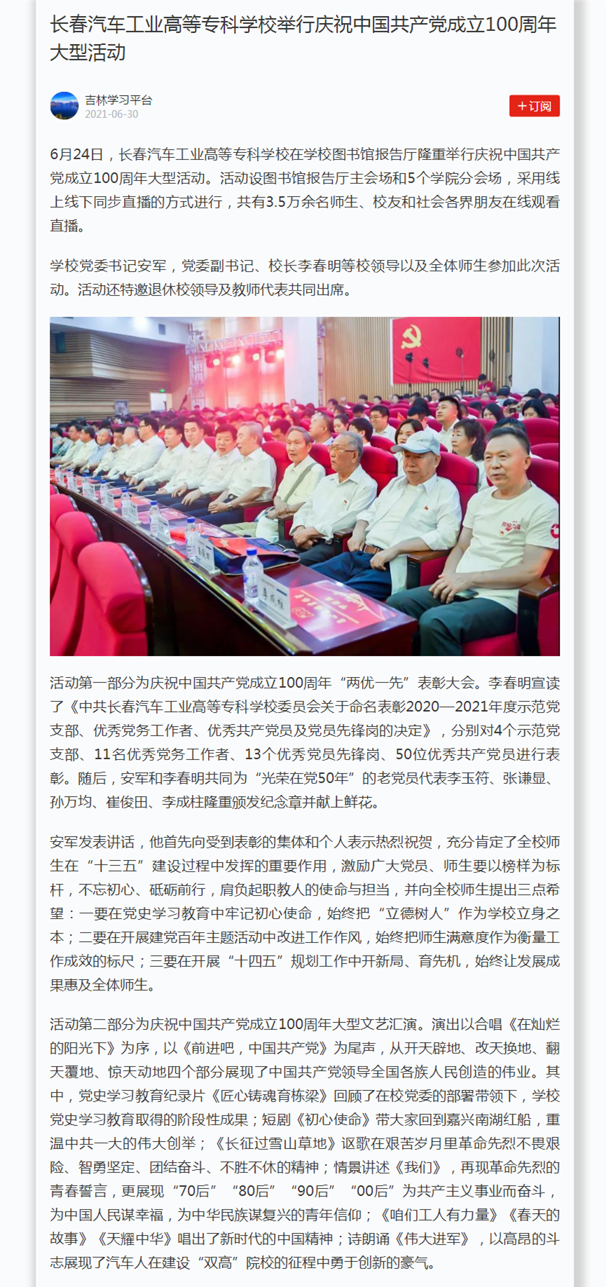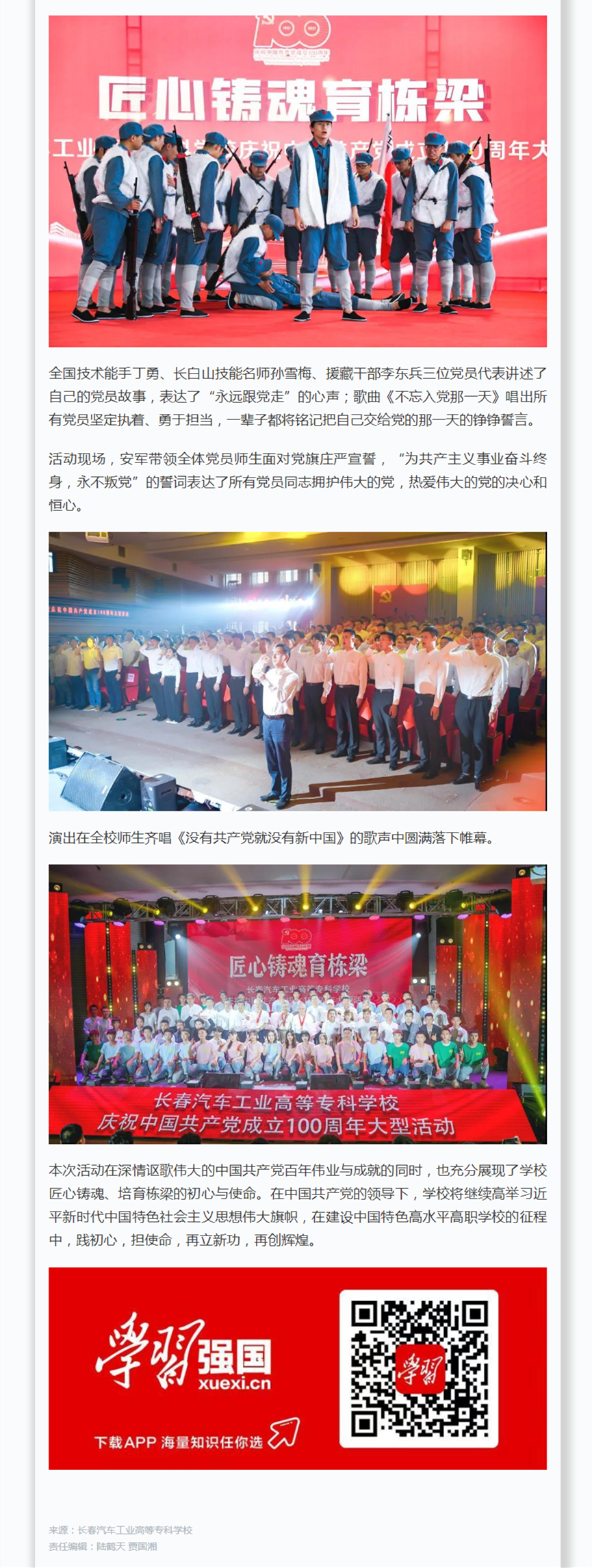 学习强国——长春汽车工业高等专科学校举行庆祝中国共产党成立100周年大型活动