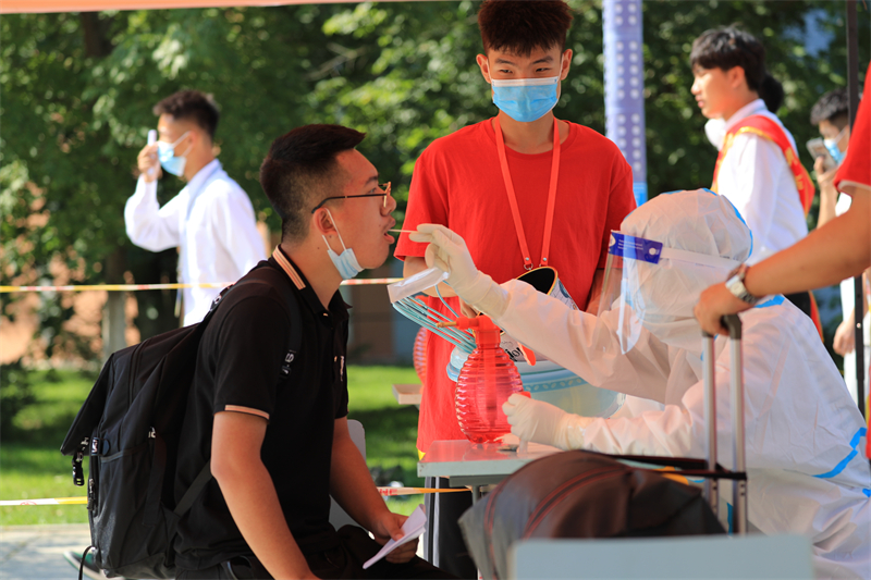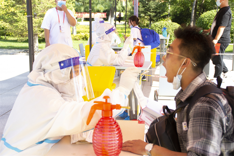 8月26日,全体教职员工和暑期留校学生作为首批参检人员,进行核酸检测。8月28日、29日、9月2日、3日,往届返校生和2021级新生进行核酸检测。截至9月3日下午15时,共完成8273人次的核酸检测,圆满完成了全员核酸检测任务。