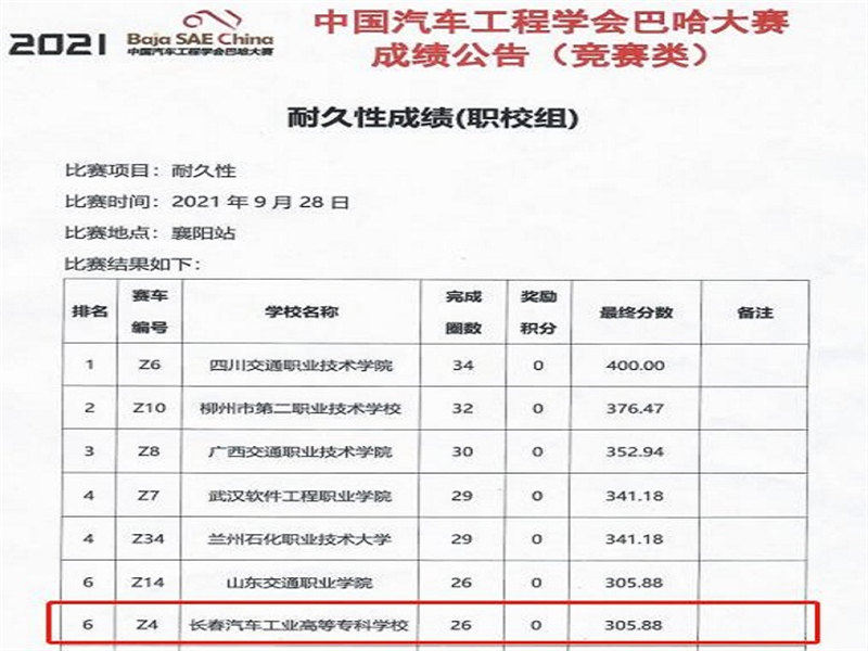 油巴哈赛车获得2021巴哈赛车耐久赛职校组全国第六名