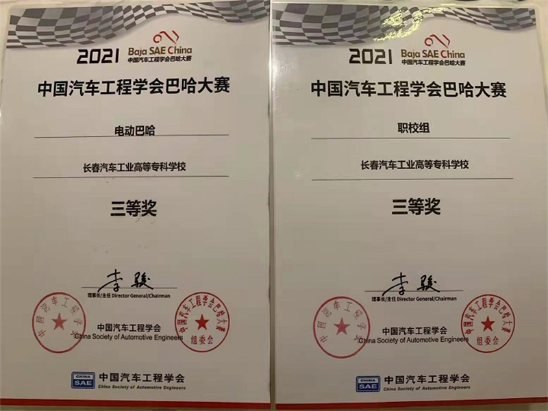 9月24日,2021中国汽车工程学会巴哈大赛(Baja SAE China,简称BSC)在湖北襄阳襄州区峪山镇巴哈赛场举行。我校领跑者车队由汽车工程学院丁勇、高伟健、于佳鑫、王小毓四名教师指导参赛,领跑者油车队荣获耐久性(职校组)全国第六名的优秀成绩。综合各分赛项成绩,在职业组比赛中,我校领跑者油车队和电车队分获全国三等奖。