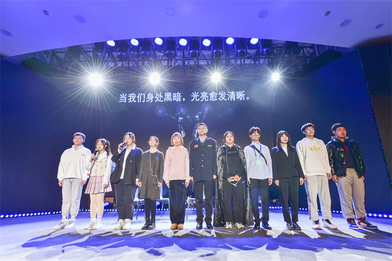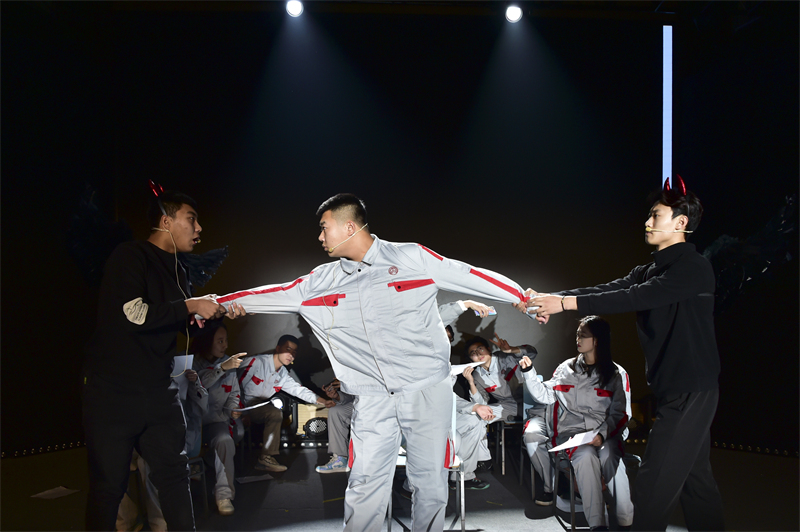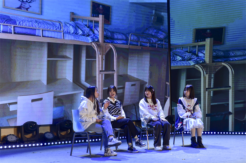 长春金融高等专科学校的心理剧作品《言且让心安》,通过后现代疗法中的隐喻、外化、镜像、替身、木偶剧等心理剧表演手法,展现经历网络暴力者的内心冲突与转化过程,引导观众勇于做自己,做理性网民,拒绝网络暴力。