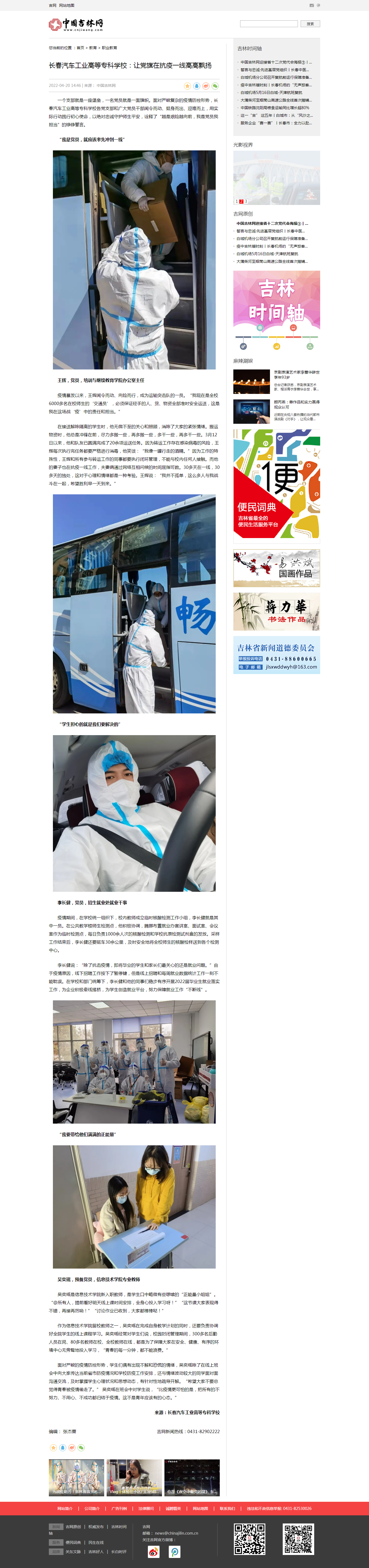 中国吉林网——长春汽车工业高等专科学校:让党旗在抗疫一线高高飘扬