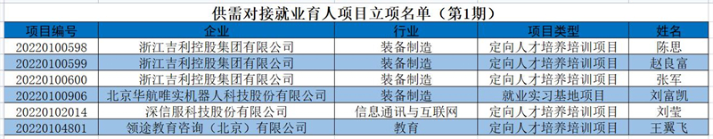 近日,教育部高校学生司印发《关于公布第一期供需对接就业育人项目立项名单的通知》,经高校申请、用人单位申报、专家审核、立项单位信息核查等环节,确定了第一期供需对接就业育人项目名单。我校共有6个项目获首批立项,其中定向人才培养培训项目5项,就业实习基地项目1项。