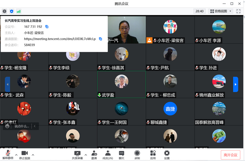 为了促进毕业生高质量就业,满足“后疫情时代”复工复产工作需求,近日,一汽解放、北京小车匠服务有限公司与我校联合举办的一汽解放售后服务项目订单班线上双选会在汽车运用学院顺利召开。
