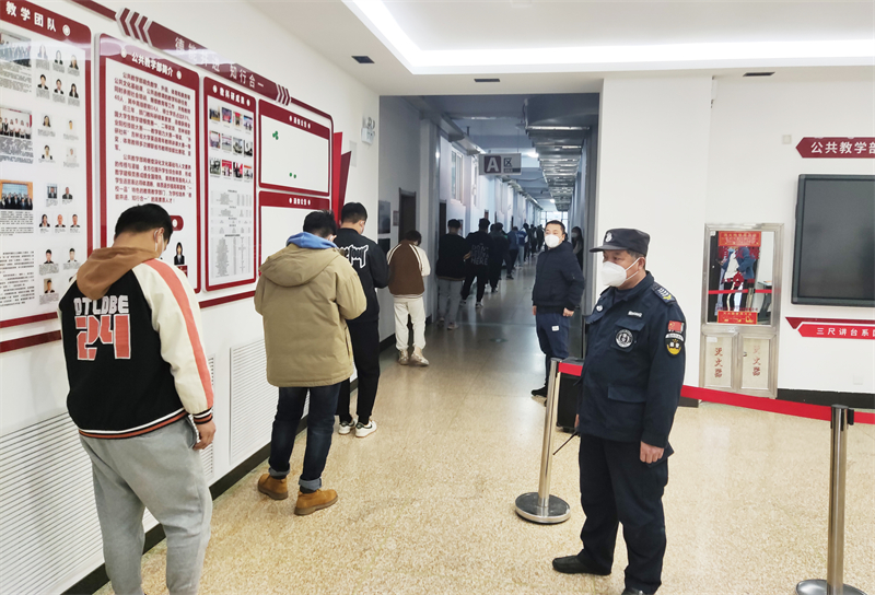 疫情防控期间,提高校园门岗通行交通管控标准,实行逢进必测、逢进必检、逢进必登记,“一人一测一登记一排查”入校模式;加大校园治安管控力度,重点加大对校园公共区域巡查频次,全天24小时每30分钟巡逻1次,校园外围拉警戒线9000米,严控外来人员和物品进入校园,监控室针对校园重点区域24小时监控,确保疫情防控期间无问题遗漏;强化校园消防安全管控措施,牵头完成对第三方服务人员寝室及教职员工宿舍等重点部位用电安全检查3次,对排查中发现的安全问题建立台账清单,将整改工作形成闭环;提升校园安全保障力度,配合总务处完成15次全员核酸检测现场秩序维护工作,为5000余名学生返乡工作提供安全保障,为我校合作单位一汽模具公司的C095项目复工复产工作提供安全保障任务。