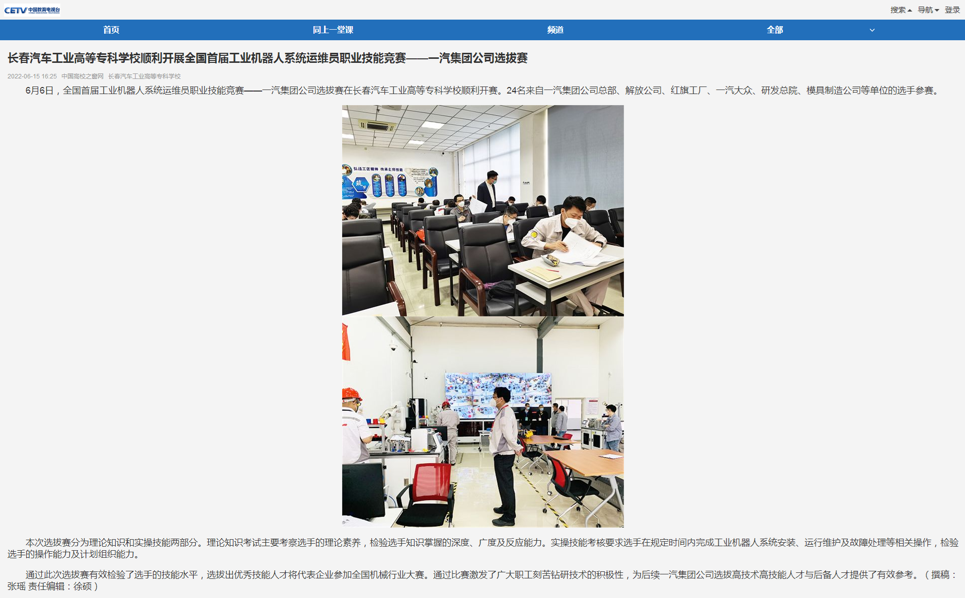 中国教育电视台——长春汽车工业高等专科学校顺利开展全国首届工业机器人系统运维员职业技能竞赛一汽集团公司选拔赛