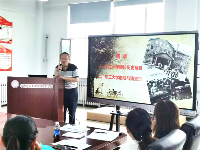 在“党支部书记带头讲”环节中,公共教学部部长潘孝春为党员教师详细讲述了长春第一位共产党员张锦春的故事。引领大家共同回顾历史事件和人物事迹,用一则则生动的故事串联起了新中国诞生的轨迹。