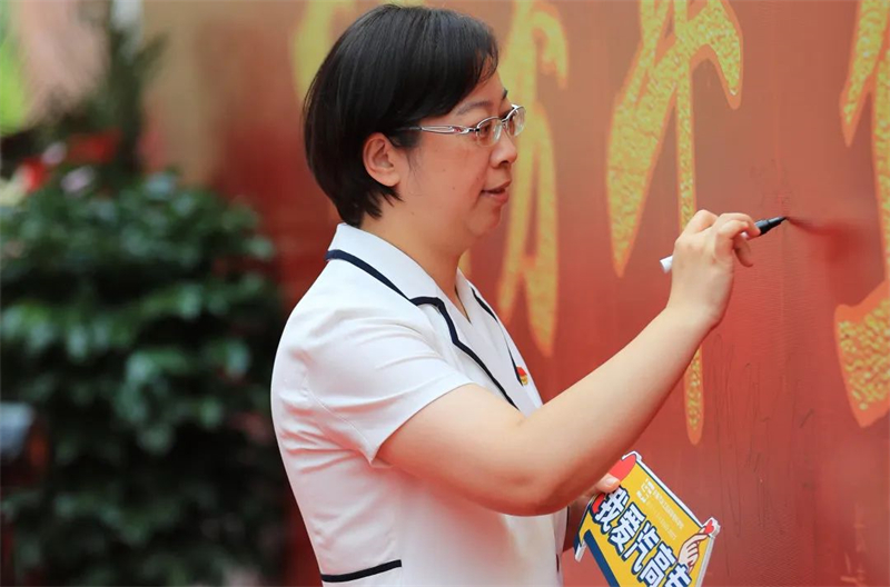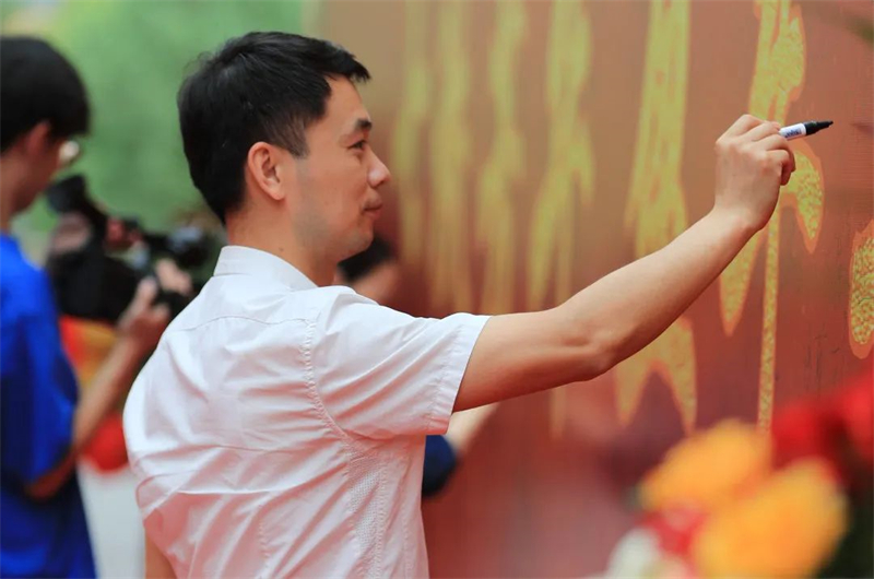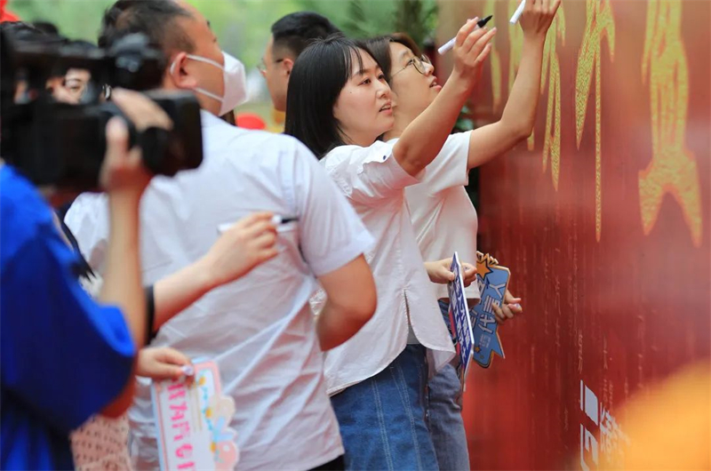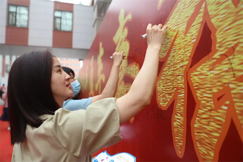 活动现场人潮涌动,广大师生热情高涨。在校领导的带领下,老师、学生们纷纷在签名墙上签名、留言,并积极参与祝福语视频录制。
