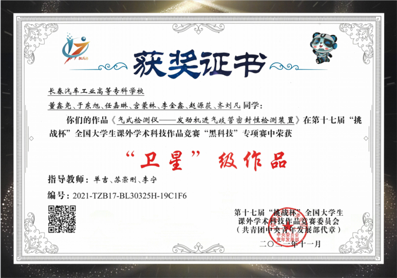 利用“以赛促练、以赛促进、以赛促学”技能人才培育模式,逐步实现了高水平竞赛与赛学共进的深度融合。在“振兴杯”吉林省青年职业技能大赛中,我校斩获工业机器人系统操作赛项与工业机器人赛项双冠,学校获评优秀组织单位,并作为唯一团队代表吉林省参加第十七届“振兴杯”全国青年职业技能大赛。我校《职教情 扩招缘 工匠魂》荣获2021年“创青春”攀登计划中国青年创业就业基金会资助项目。我校《气式检测仪-发动机进气歧管密封性检测装置》荣获第十七届“挑战杯”全国大学生科技学术作品竞赛(黑科技专项)卫星级作品,《我的红旗我的梦》荣获第十七届“挑战杯”全国大学生科技学术作品竞赛(红色专项)国家一等奖,最具感染力作品奖,最终获评全国优秀组织单位和先进工作者。
