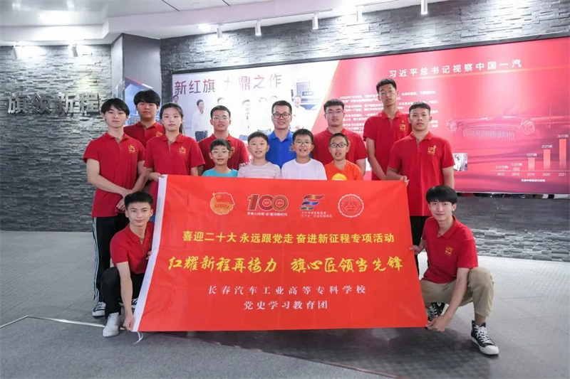 把经典,献给时间;用时间,造就经典。在这一天,触摸岁月,品味经典。2022年7月23日,在总书记视察吉林、视察一汽两周年之际,长春汽车工业高等专科学校“追随总书记足迹,青春奋进新征程”党史学习教育团走进一汽红旗文化展馆,与西藏日喀则小学、北京市海淀外国语实验学校的少先队员们一同重温红旗从诞生到停产、再到复兴的不凡历程,感受国车魅力之魂,重走第一辆“解放”牌汽车诞生的装配线,将记忆拉回1956年7月13日。