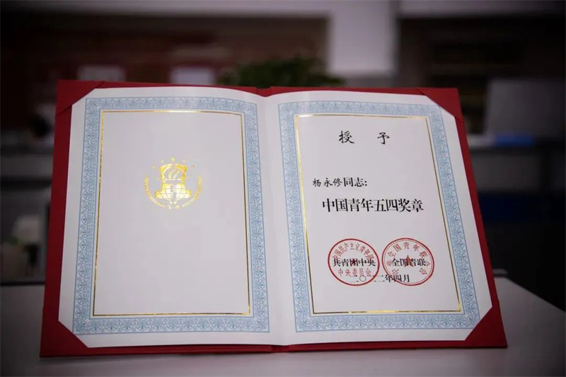在庆祝中国共产主义青年团成立100周年之际,作为第26届中国五四奖章获得者,青年的楷模与榜样,杨永修在现场勉励青年——