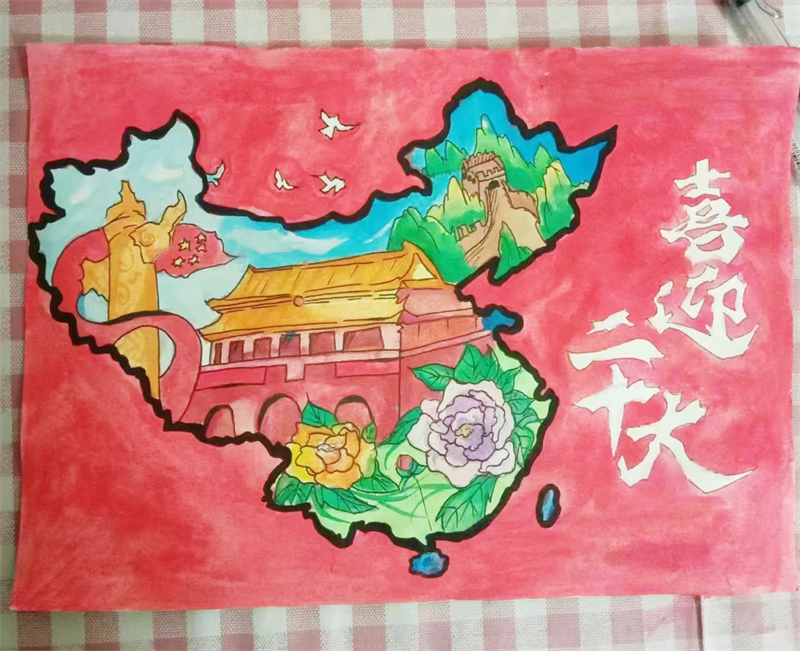 绘画作品《喜迎二十大,永远跟党走》2022级段广超