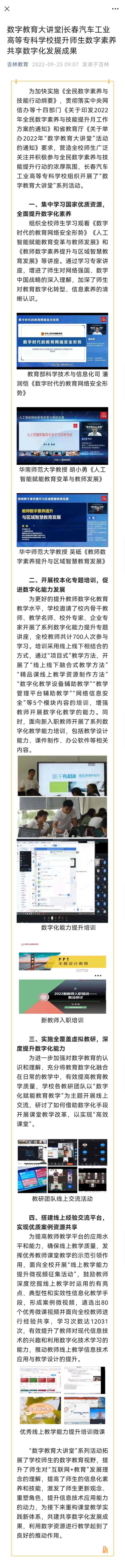 吉林教育——数字教育大讲堂|长春汽车工业高等专科学校提升师生数字素养 共享数字化发展成果