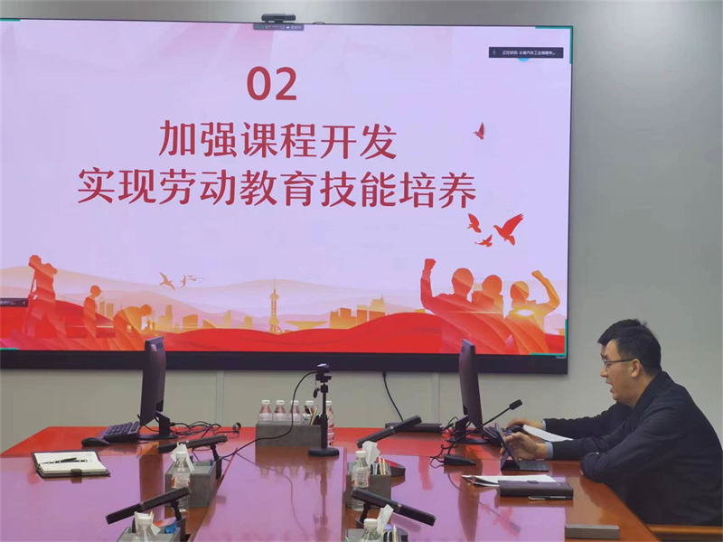 安军从五个方面阐述了学校以新时代工匠为引领,在劳动教育工作中积累成功经验的劳动教育体系:通过政行企校协同打造“长春国际汽车城”劳动文化育人体系,加强文化建设,实现劳动教育文化浸润;通过推动劳动教育与思政教育、通识教育、专业教育相融合,实现劳动教育技能培养;通过劳动教育进社区、进自然、进企业、进农村,实现劳动教育校外延展;通过运用职业启蒙、中高职贯通培养、校企合作等模式为引领,实现劳动教育模式的创新;通过发挥教育阵地、大赛平台及国际项目平台的宣传优势,实现劳动教育价值渗透。