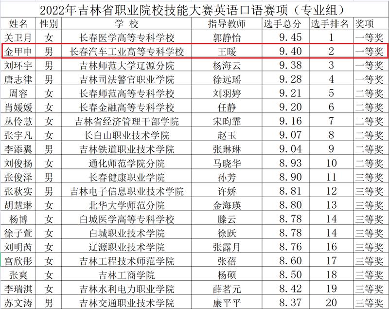 喜报|我校学生金甲申荣获吉林省职业院校技能大赛英语口语赛项一等奖