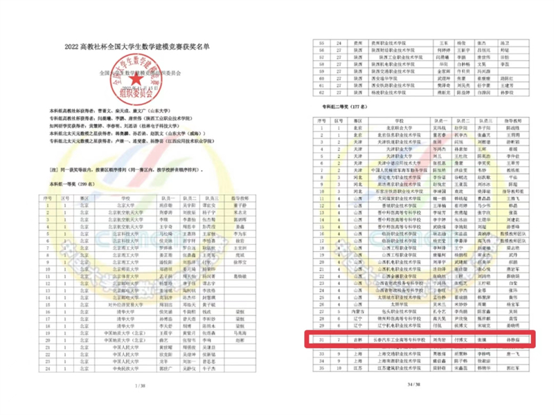 2019年至2022年,我校数学建模团队已连续四年获得该项赛事的国家级奖项,参赛成绩在吉林省高职院校中保持领先优势。我校也是此次比赛中吉林省唯一一所获得国家级奖项的高职院校。我校另外三支参赛队伍分别获得吉林赛区一等奖1项、二等奖2项。