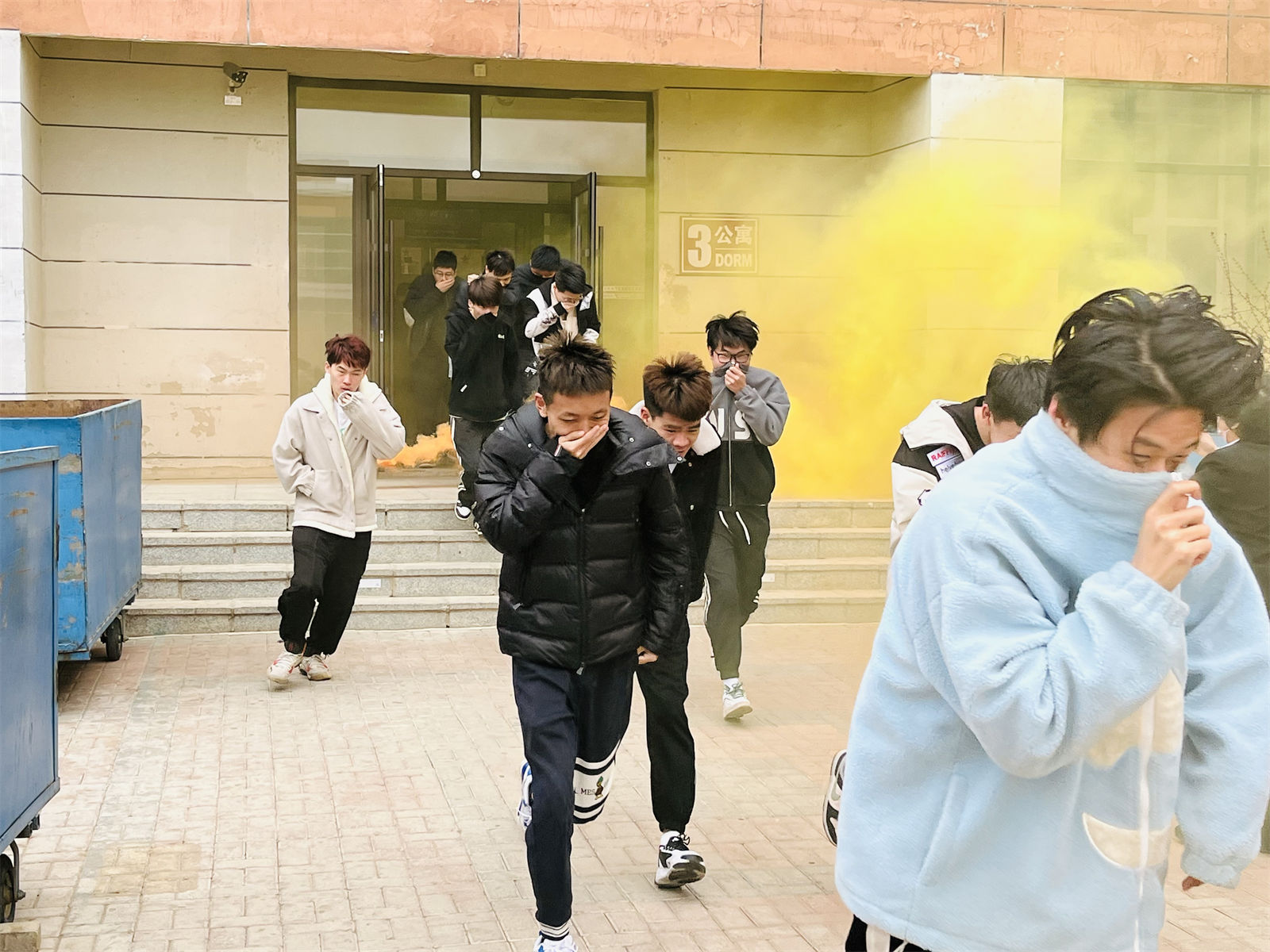 本次活动分为学生公寓防火疏散演练和教学楼内师生防火疏散演练两个环节,保卫处教师刘洺伸、李广民、徐光辉进行现场监督指导。警报拉响,启动消防应急疏散预案,汽车工程学院辅导员、授课专业教师有序组织疏散楼栋学生,所有师生有序撤离,快速到达演练指定的逃生地点。