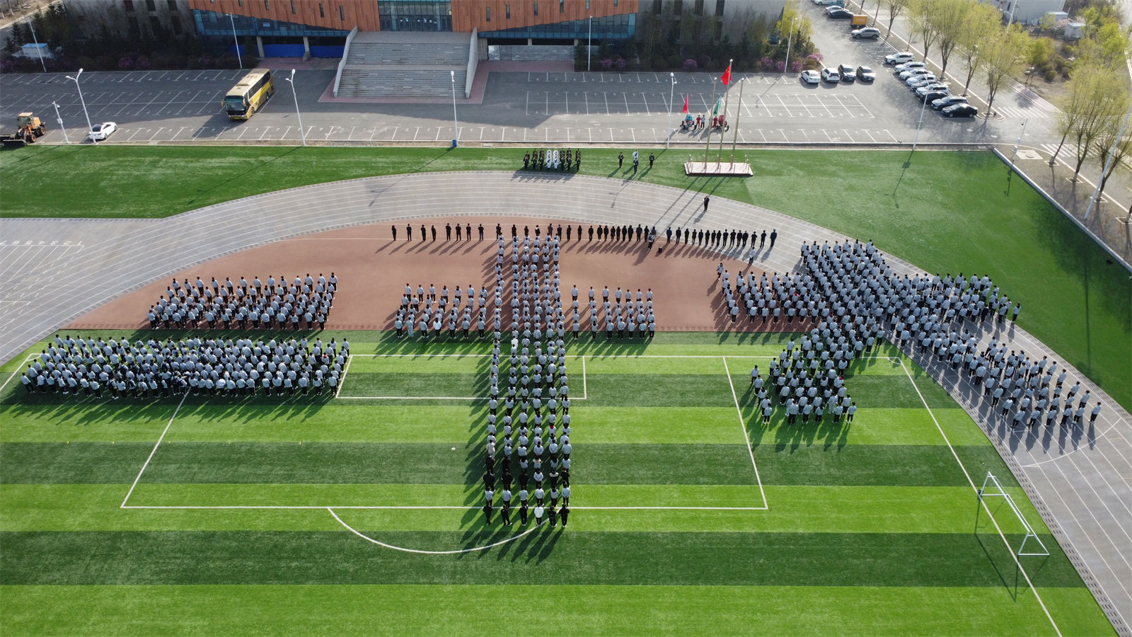 随着庄严的国歌奏响,英姿飒爽的国旗护卫队队员迈着铿锵的步伐走向升旗台,五星红旗冉冉升起,现场全体师生昂首挺胸,向国旗行注目礼,共唱国歌。