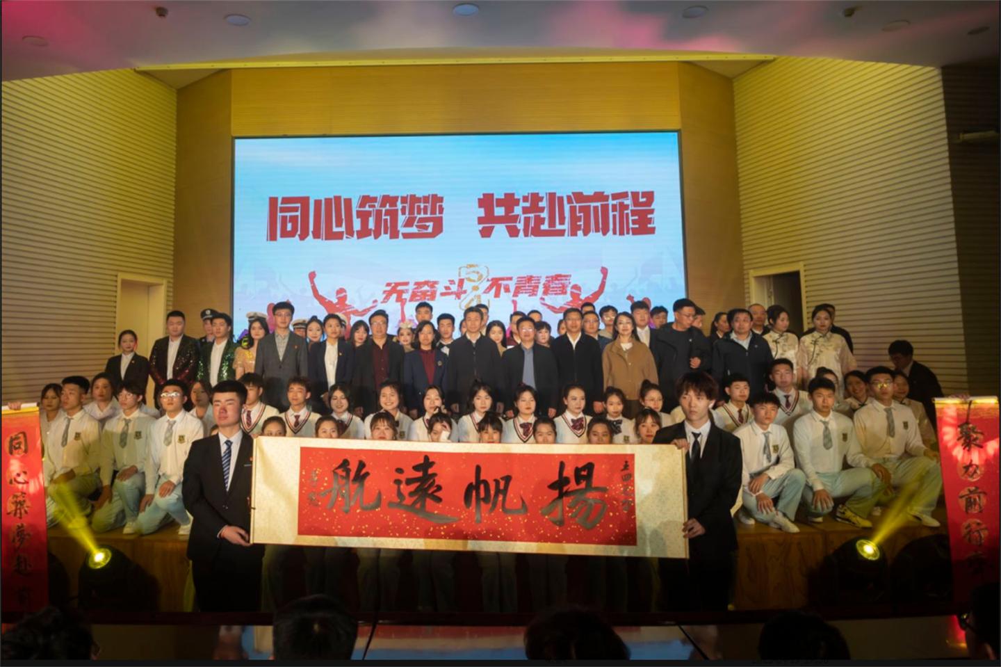 为进一步弘扬和传承“五四”精神,引导广大青年在新时代建设中担当新使命、展现新作为,进一步增强学校在职业本科建设中的责任感和使命感,机械工程学院党总支受学校党委委托,联合前程街道于4月27日在我校报告厅举办“同心筑梦·共赴前程”五四青年节文艺汇演。汽开区党工委委员、管委会副主任史文祥、市委网信办一级调研员张国权、前程街道党工委副书记刘艳华、汽开区社会事业管理局局长朱亮、汽开区党群工作部副部长姚明亮、汽开区党工委宣传部副部长钟梅、前程街道党工委副书记赵晶,我校党委副书记赵娜、机械工程学院负责人陈艳辉、党总支副书记杨凤湖以及前程街道党工委班子成员、各驻街单位主要领导、前程街道人大代表、政协委员、非公企业家代表等出席演出现场。