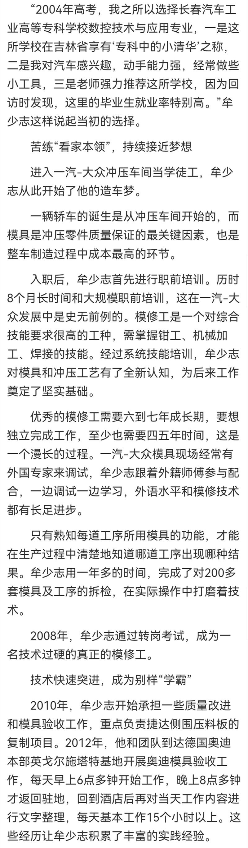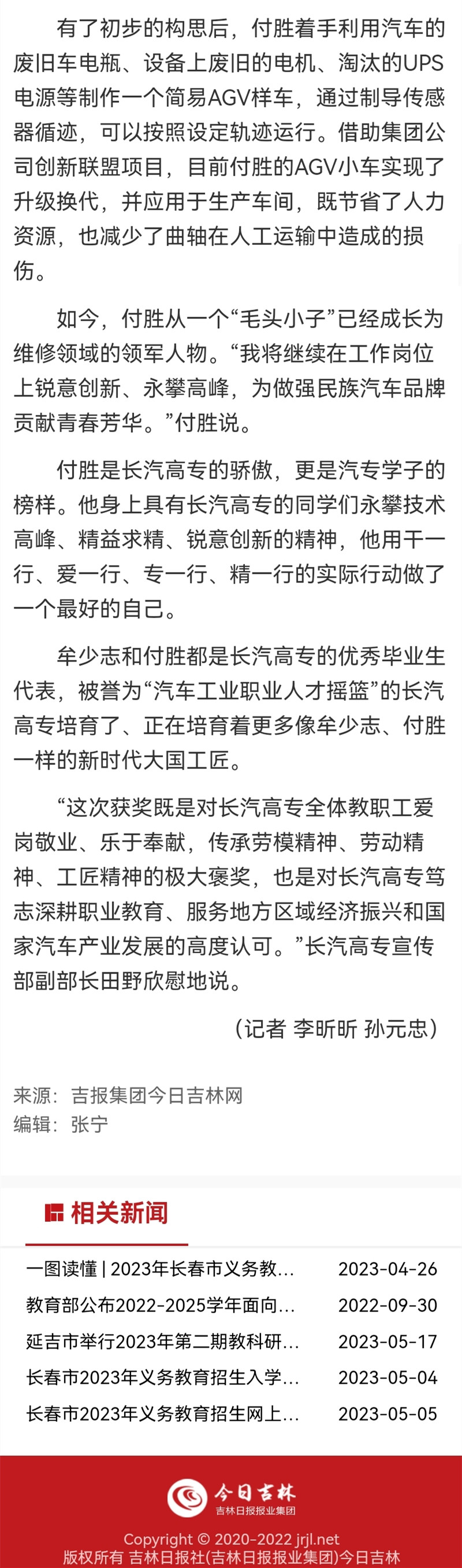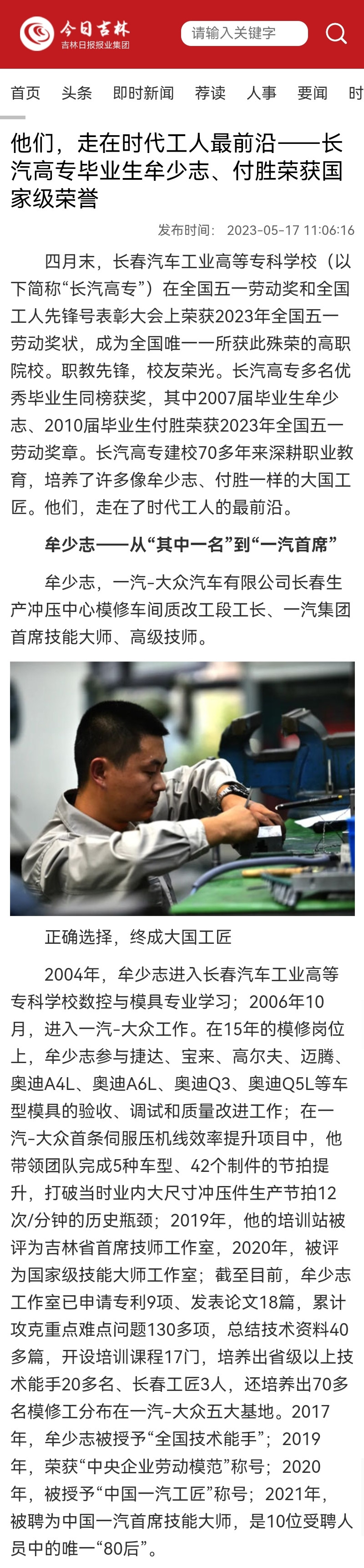 今日吉林——他们,走在时代工人最前沿——长汽高专毕业生牟少志、付胜荣获国家级荣誉
