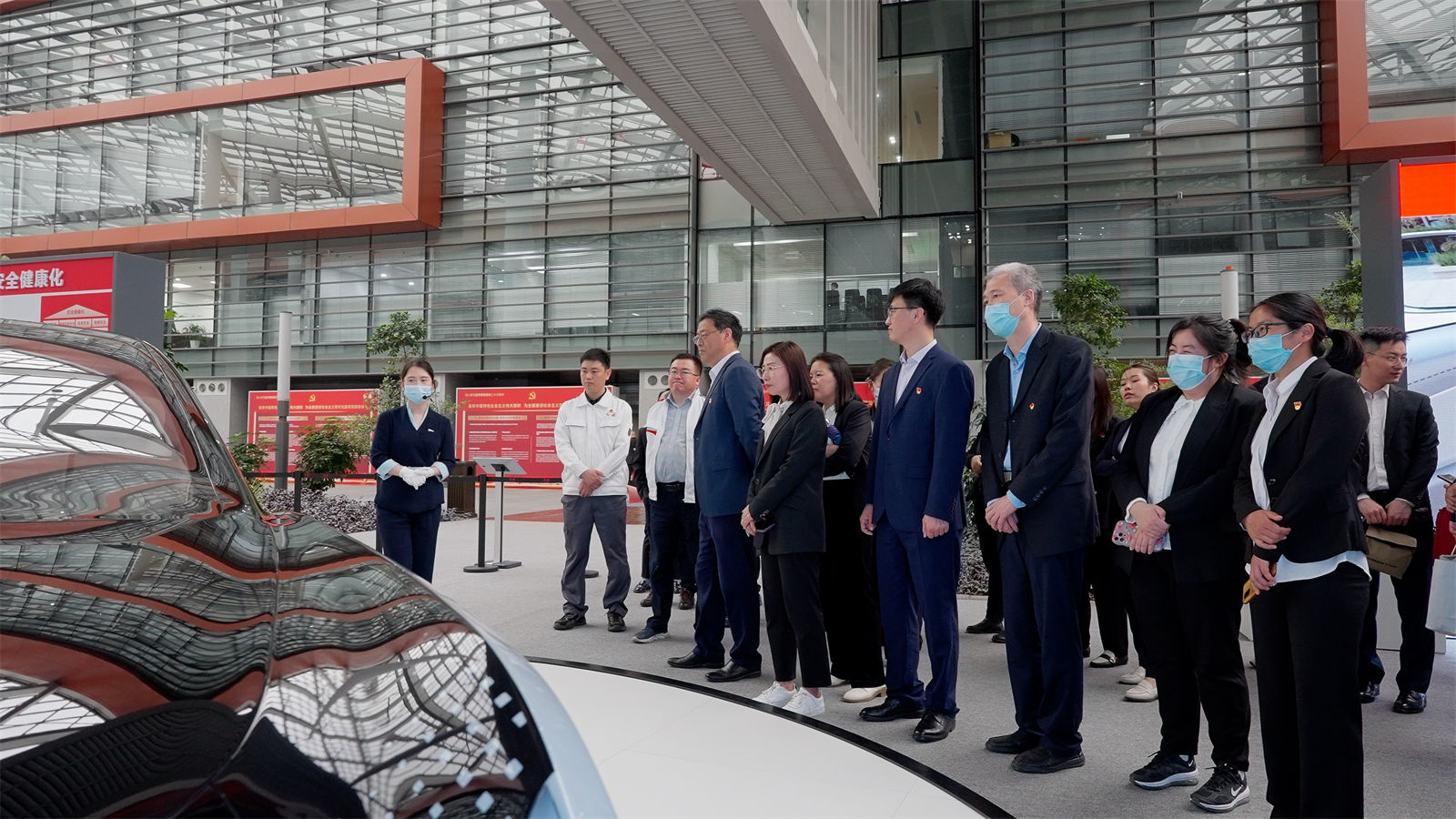 为推进学习贯彻习近平新时代中国特色社会主义思想主题教育落深落实落细,5月16日,学校副校长胡国良、机械工程学院负责人陈艳辉、党总支副书记杨凤湖以及学院党总支教师代表一行赴一汽研发总院试制所参观调研。研发总院党委副书记、工会负责人田立新,研发总院党群管理部(两办)部长于雪梅,我校优秀毕业生、优秀兼职教师杨永修陪同调研。