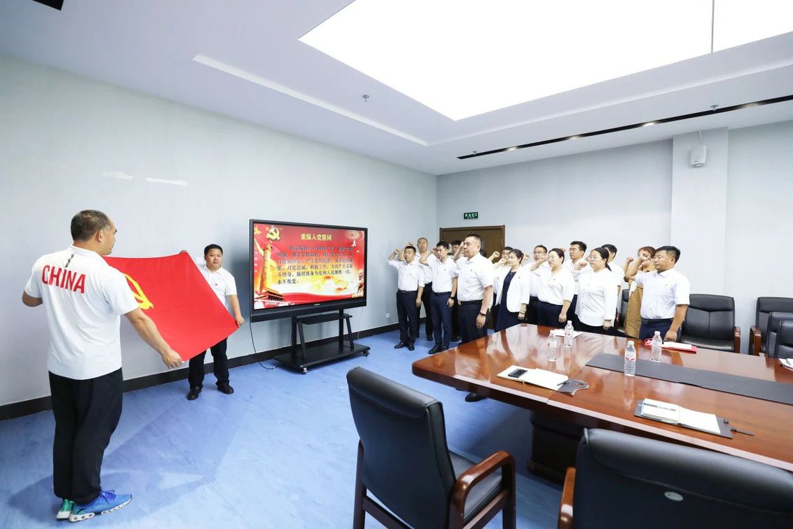 王学山带领全体纪检监察干部在鲜艳的党旗前,举起右拳,重温入党誓词,并为大家赠送“政治生日”纪念册,寄语纪检监察干部一定要时刻牢记党员身份,增强党员意识,注重党性修养,坚持不懈用习近平新时代中国特色社会主义思想凝心铸魂,在工作和生活中践行“打铁必须自身硬”的要求,用忠诚干净担当发挥好职能作用。