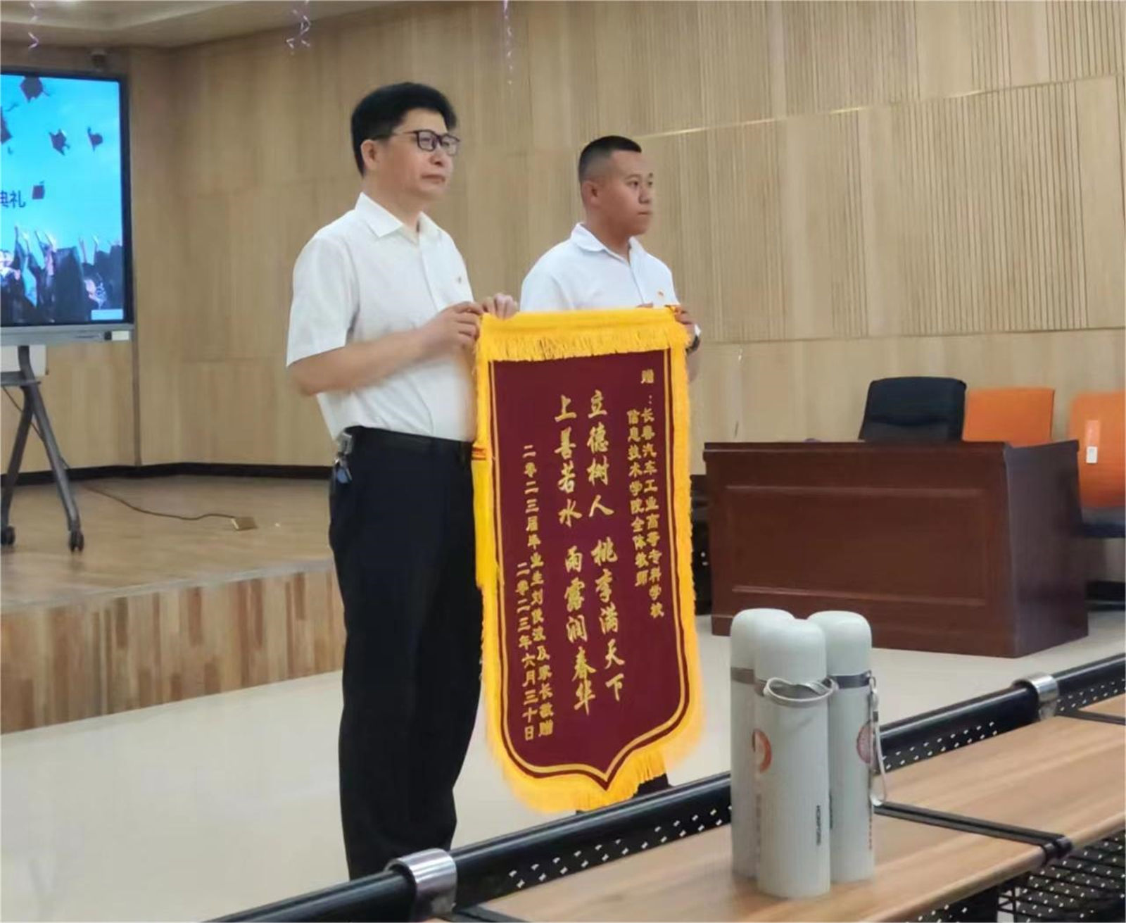 汽车营销学院2023届毕业生为学校、学院制作了锦旗以抒发临别感恩之情,愿学子前程似锦,愿母校百年长青。