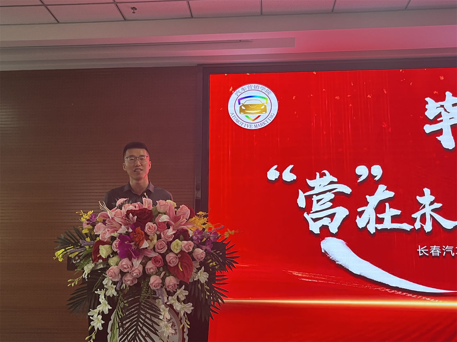 在观看完毕业纪念视频后,汽车营销学院院长任玲发表毕业寄语,她表示,希望毕业生继续保持对学习的热情和好奇心,坚持自己的信念和原则,积极面对挑战和困难。任玲希望毕业生要永葆初心,笃行致远,涵养高尚的品德,练就过硬本领,以坚持的韧劲在工作中成为不可替代的能手,成就出彩人生。