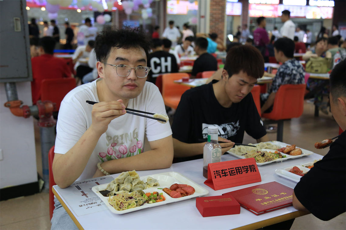 午餐会上,师生们围坐在一起,一边吃着饺子,一边聊着学习和生活中的点滴。学院领导和老师逐桌与毕业生们话别,为他们送去出发前的嘱托,希望他们工作顺利,前程似锦,常回来看看。