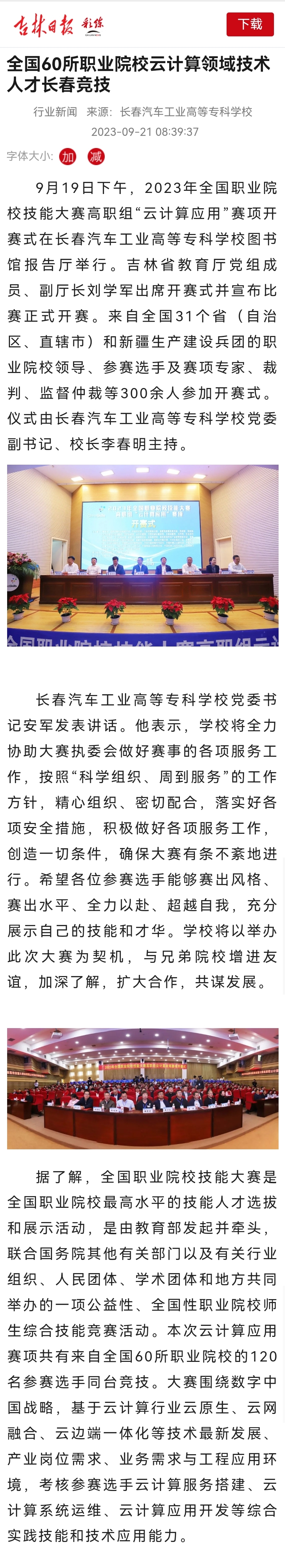 吉林日报——全国60所职业院校云计算领域技术人才长春竞技